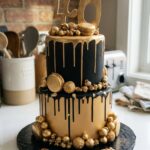 There is a certain joy in a cake that keeps a secret until the very last moment. When you first set this Black And Gold Cake on the table, it looks like a sophisticated masterpiece with its dark-as-night frosting and elegant gold accents. But the real magic happens when you cut that first slice and a cascade of gold coins and shimmering candies spills out onto the plate. It captures that childhood sense of wonder that we often lose as we grow older, making every guest feel like they have discovered something truly rare.