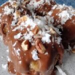 - Dip each frozen ball into the chocolate using a fork, tapping off any excess.
