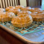 Allow the cake to cool in the pan for exactly 10 minutes on a wire rack. Any longer and the sugars may begin to stick; any shorter and the structure may not be set enough to travel. Invert the cake onto a rack, then flip it once more so the ‘bottom’ (the flatter side) is facing up. This mimics the appearance of a donut and provides a better surface for the glaze. Cool completely.