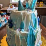 To honor the effort put into the Frozen Cake, serve it on a chilled silver or white marble platter. The cold surface complements the theme and keeps the cake stable during the party. For a truly magical effect, place a small LED light behind the sugar castle to make the blue ‘ice’ glow from within.