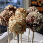- Insert a lollipop stick into each ball and transfer to the freezer for 30 minutes to firm up.